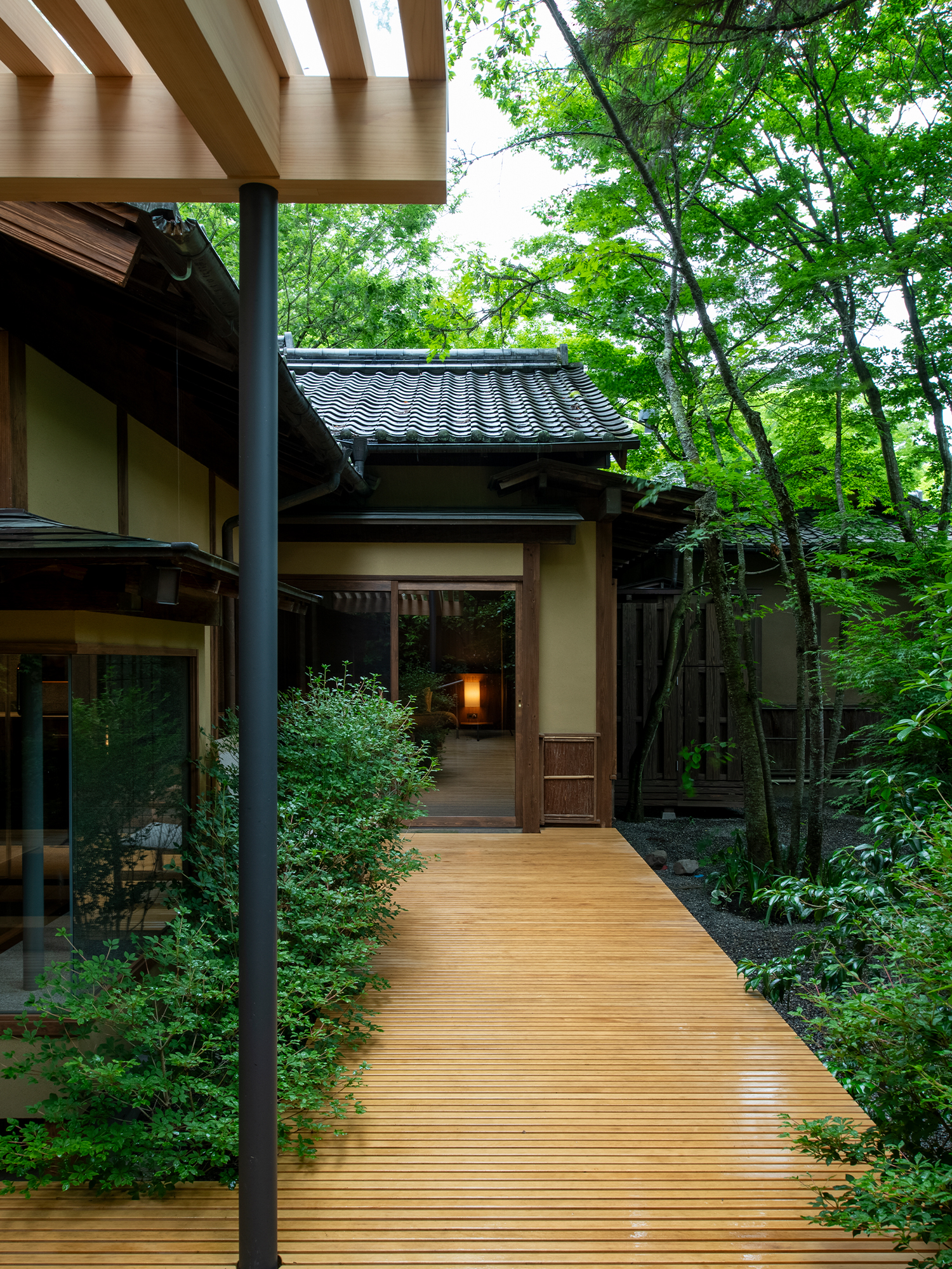The existing layout was centered around two serene Japanese-style rooms, each with its own distinct space, divided by numerous partitions and fixtures. The rooms were surrounded by a spacious garden, which was to be redesigned by a gardener, utilizing the existing trees. With these factors in mind, the goal of the renovation was to address the interior challenges while creating a guest room that fully embraced the newly revitalized garden.