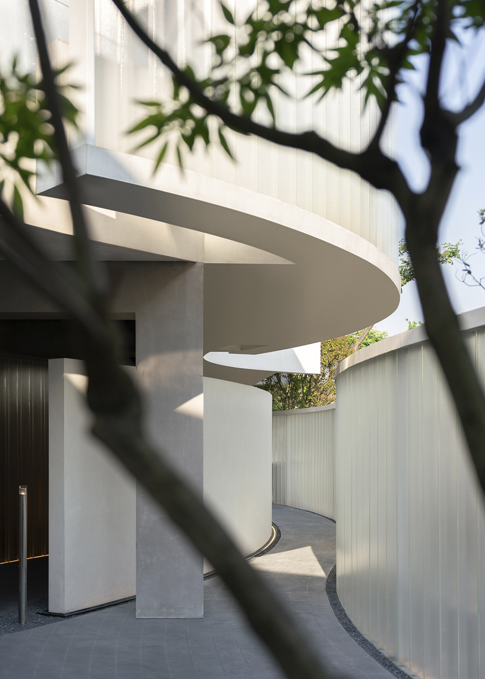 A large number of S-shaped walls separated by virtual and real reinforce the sense of extension of the path, in which the line of sight is thrown to the fictional end scene in the sense of security. The minimalist geometric curves are repeated and extended in the space, and the material is interwoven to reconstruct and translate the classical garden aesthetic of "revealing the spirit". Through the modern and ambiguous interface, the line of sight naturally extends to the distant unfinished place. The design method of path guided perception is exactly the opposite of the concept of "building walking" in modern architecture.