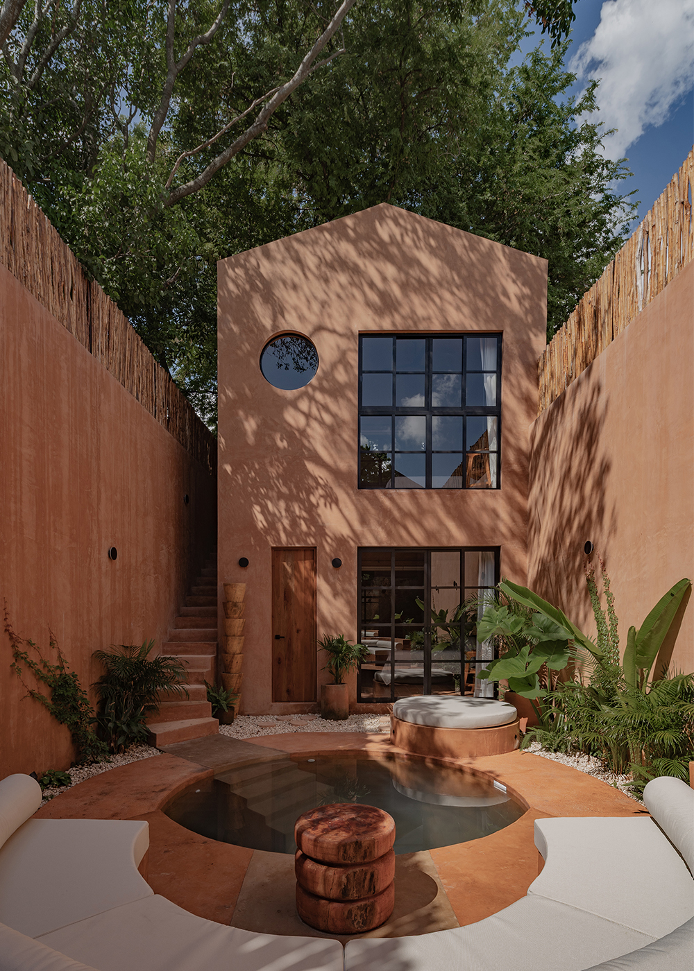 Enekén Studio, led by architect Miguel Tapia, presents Casa Skoura, a 115 m² project in Yucatán, Mexico, that transforms a narrow lot and the remains of an old structure into an efficient, climate-responsive home defined by earthy materials, generous heights, and a deep connection to nature and its context. Taking inspiration from the Skoura desert in Morocco, the house embraces the warm orange tones of its sand, reinterpreting them through pigmented concrete, chukum (traditional Mayan finish) and pasta tiles.