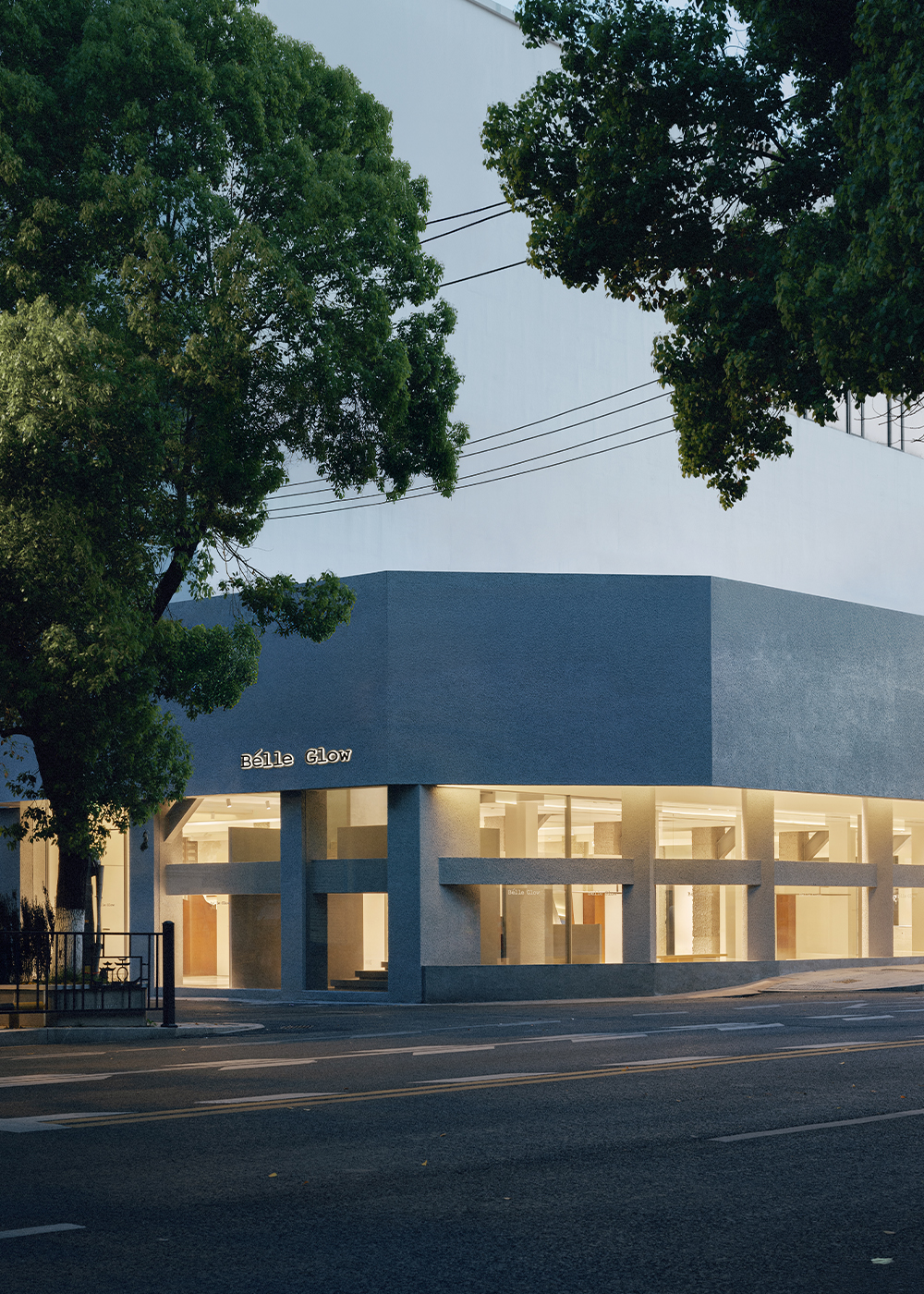 Architecture serves as a vessel, encapsulating aBélle Glow city’s collective memory and aspirations. Its form emerges as an authentic response to site-specific conditions, fostering a dialogue with the surrounding context. At No. 193 Hanghai Road, a compact white structure punctuates the northwestern edge of an otherwise mundane urban streetscape. As a pivotal adaptive reuse project, the original two-story podium has been reimagined as the Hangzhou flagship store for the multi-brand concept Bélle Glow, seamlessly integrating its revitalized identity into the city’s evolving fabric.