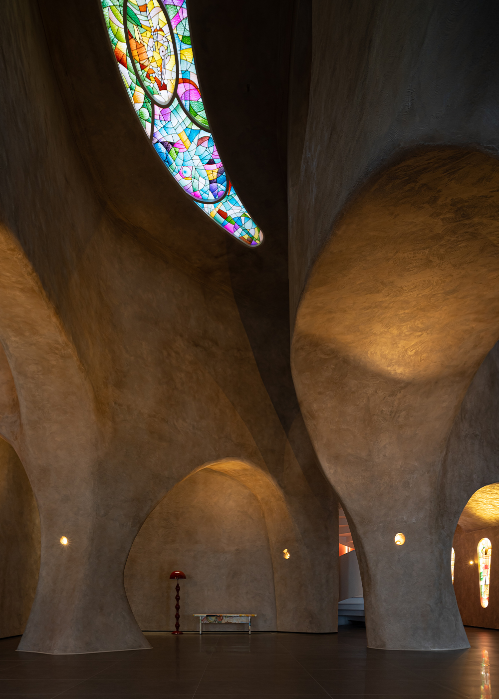 This building is a paradigm of the fusion of design and art. From curves, colors, structures to materials, each element is meticulously planned and resonates with one another. It is not only a physical space but also a vessel that carries emotions and spirit, building a bridge for dialogue with the spiritual world.