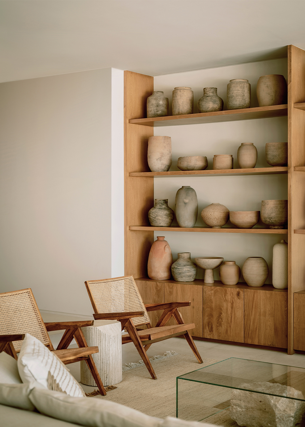 The neat design is complemented by an exquisite curation of jute, henequen, clay, copper and stone pieces from different parts of Mexico and the result of collaborations between Mexican artisans and artists.