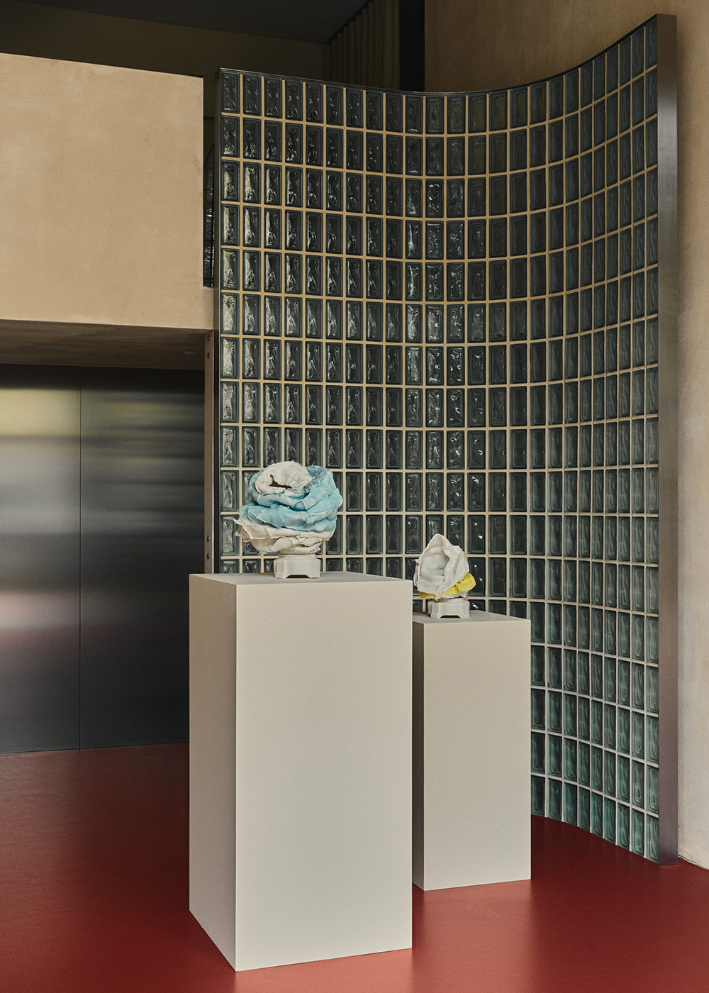 The texture of the hand-rubbed plaster reveals the warmth of craftsmanship and the flow of time. An arched glass Mosaic wall not only serves as the visual focal point but also symbolizes the existence of a "gateway", like a passage guiding visitors through history and the present, activating their acute perception of form and light, and establishing a visual response between the exhibits and the environment. On the other side, the steel wall sets the tone for the display area, highlighting the warmth and uniqueness of the exhibits with its cold and stern material. It has a composed and steady temperament, like the curtain of a theater or the background color of a museum, reflecting the sculptural quality of the exhibits. Design exits here, leaving the initiative to art itself.