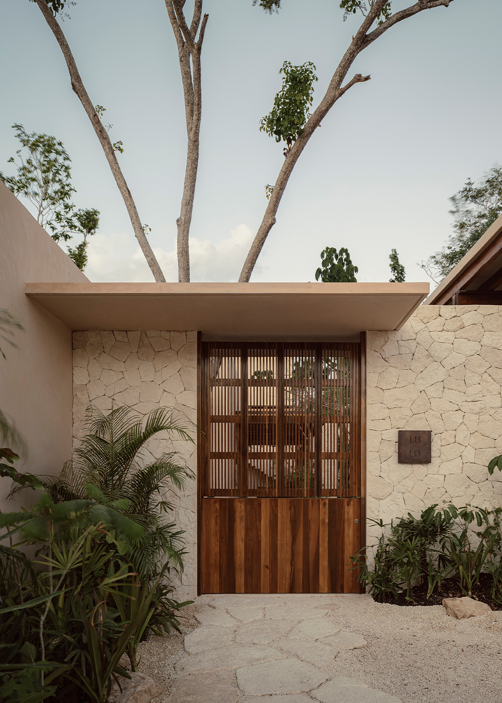 The hotel features 10 rooms, distributed in two different typologies. The ground-floor units follow a horizontal spatial composition that encourages a direct connection with the surroundings through outdoor terraces and indoor-outdoor bathrooms. The upper floor rooms, offer a vertical reading, which includes a double-height social area and two bedrooms with ensuite bathrooms, resolved through a mezzanine. The result is spacious, well-ventilated interiors that perform adequately in Tulum’s warm and humid climate.