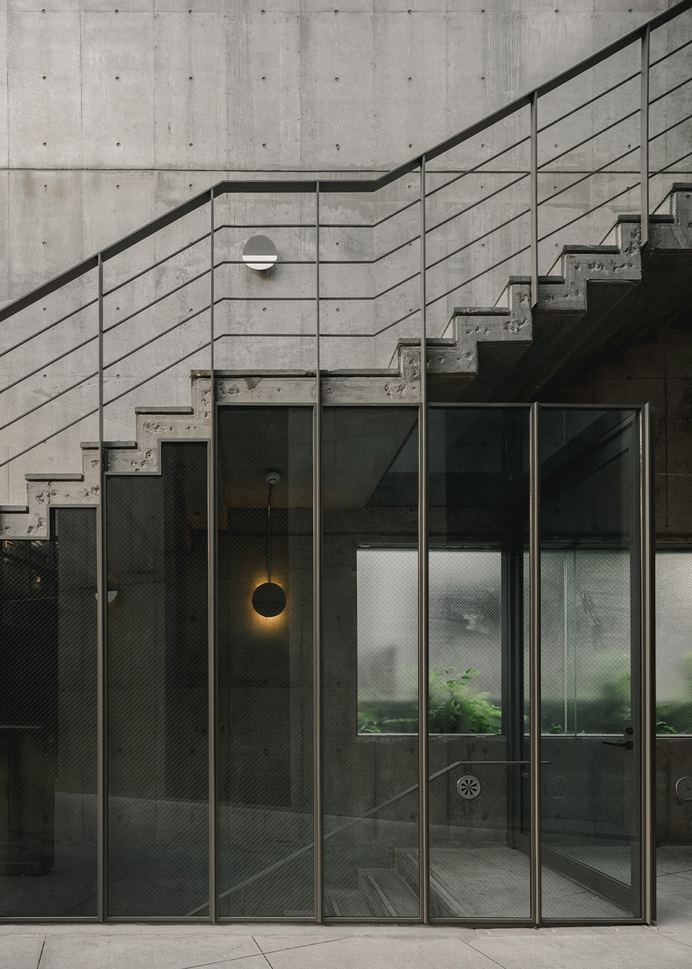 Originally built in 1990, the concrete building underwent a transformative renovation to bring Karimoku's vision to life. Non-structural elements like window frames and staircase railings were stripped away, revealing the core framework of the building. The space was meticulously reimagined, incorporating gray-tinted and clear glass, simple and sleek steel railings and frames, a modern lighting system, and elegant wooden accents crafted by Karimoku. The result is a contemporary space where the enduring rawness of the original structure seamlessly integrates with the refined elegance of the newly introduced elements.