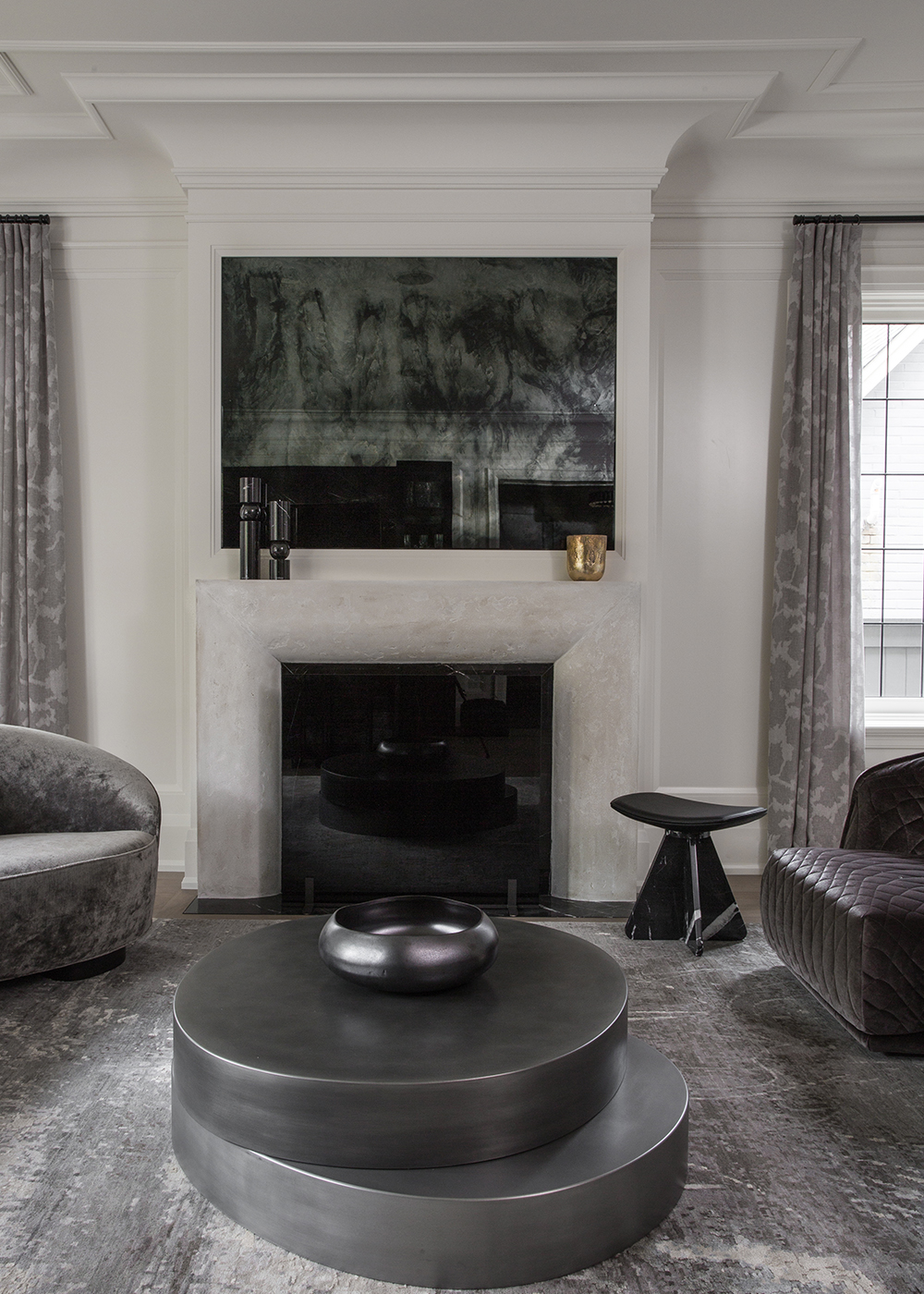 The home belongs to a couple in their 40’s with five sons under the age of 17 —a lively household. He works in finance, while she, a former model, now turns her creative energy toward making art of her own. “The brief to design their home called for an entirely new narrative,” Kim Lambert remembers. “They were open, curious, and eager to explore the interplay of hard and soft elements—a language I love to speak.”