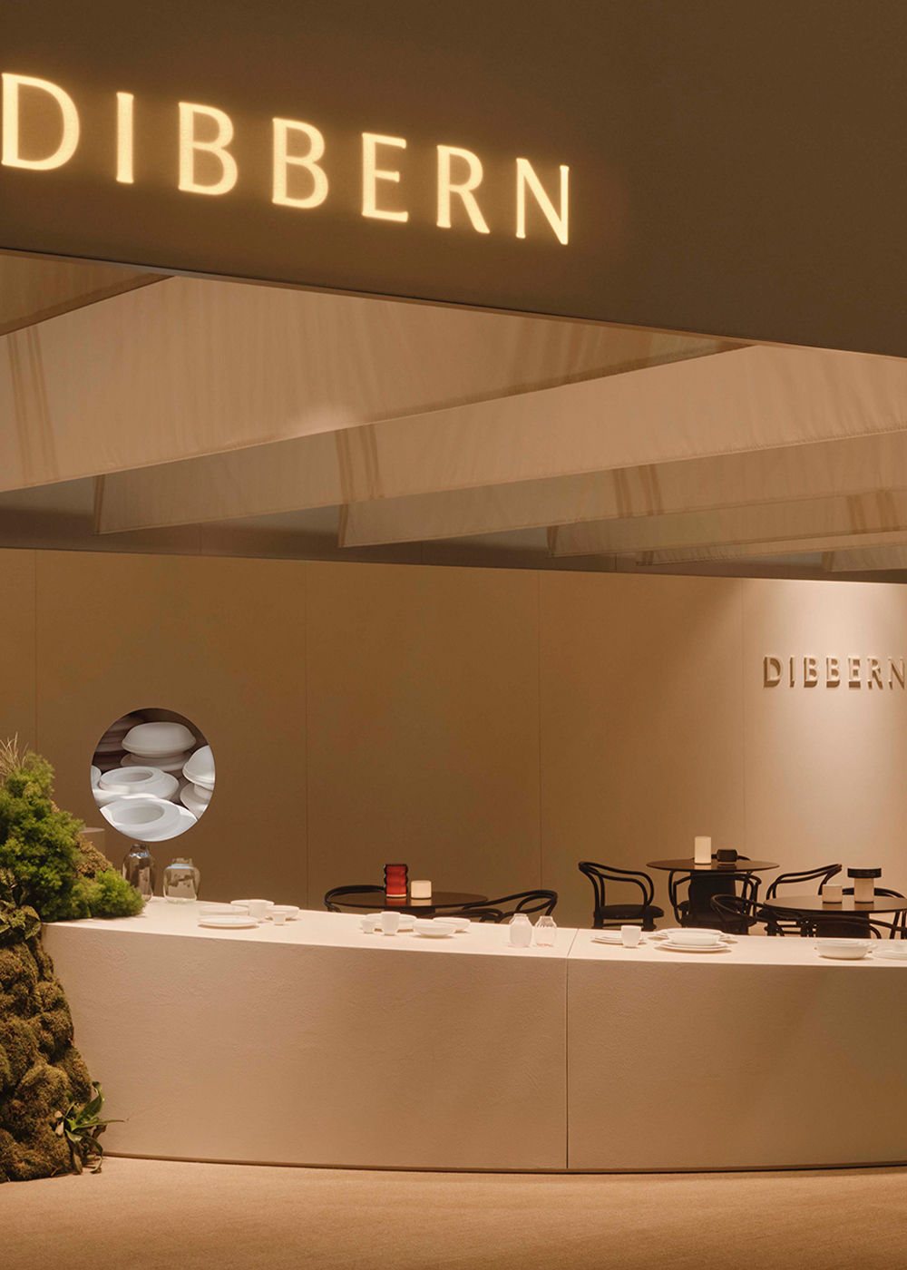 A new spatial identity – Nidus has designed the new trade fair booth for Dibbern. A walk-in homage to timeless table culture, craftsmanship, and aesthetic durability.