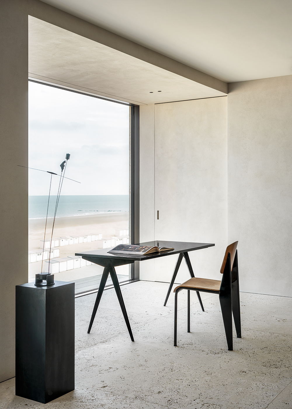 DH Residence is an apartment with sea view on the 4th floor of an apartment building at the Belgian coast. This holiday home is designed by Vincent Van Duysen Architects to have a place to relax and to spend quality time with the family.