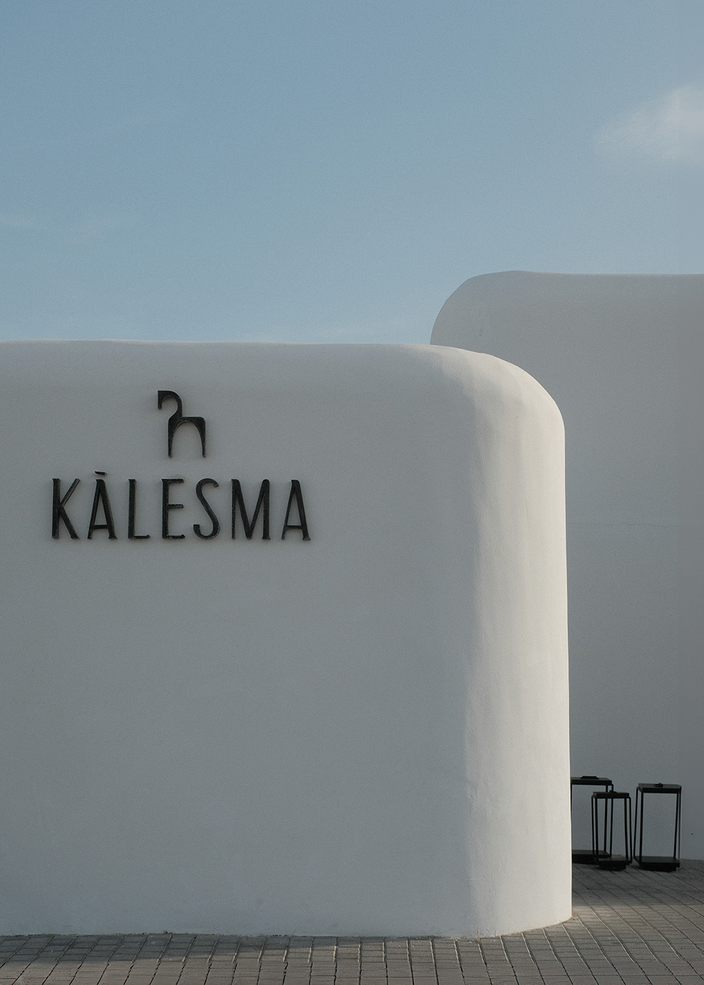 We left the bustling town and made our way to the ridge along the northwest of Mykonos. The noise faded behind us, replaced by an expanse where time seemed to stand still. In the distance, a cluster of white buildings lay quietly along the hilltop, like a natural amphitheater carved by sunlight. This is Kalesma—a vessel for light envisioned by designer Vangelis Bonios, a place where time, nature, and the soul return to harmony.