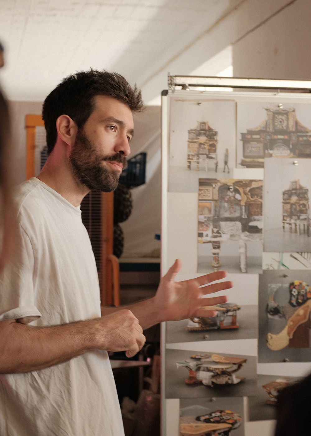 After eight years working at Nacho Carbonell's studio, Kostas returned to his hometown to establish his own practice. His background in engineering and art fuels his passion for materials and construction techniques. In his open narratives, he consciously or unconsciously merges diverse elements—“various materials and shapes, reorganized and elevated”—until a work of art is born.