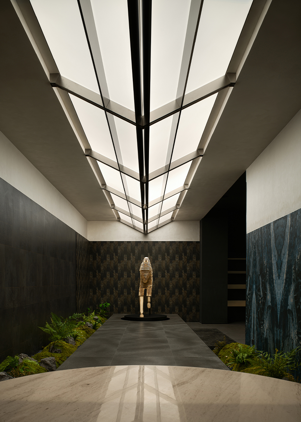 The Material Pavilion centers on the profound integration of architectural aesthetics and ceramic tiles, blending oil painting exhibition techniques with the rich narrative essence of castle architecture. This transforms the tile showroom into a "touchable art museum"—visitors not only perceive the physical texture of the tiles but also immerse themselves in spatial storytelling, resonating emotionally with original artistry and the brand’s spirit, redefining ceramic tiles as a "language of spatial aesthetics."