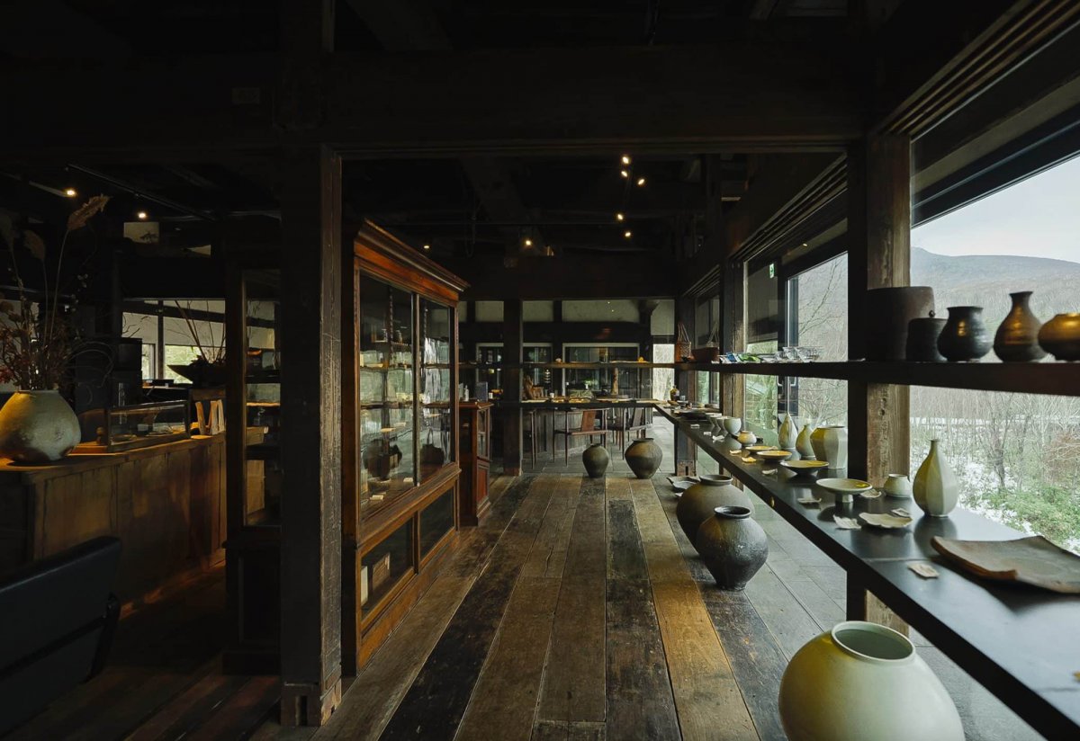 The villas are adorned with a curated selection of antique and modern ceramics, changed seasonally, as well as contemporary paintings and sculptures from Shouya Grigg's private collection. Carefully selected books are provided to inspire guests. From the terraces, one can overlook views of forests, valleys, fields, and distant mountains.