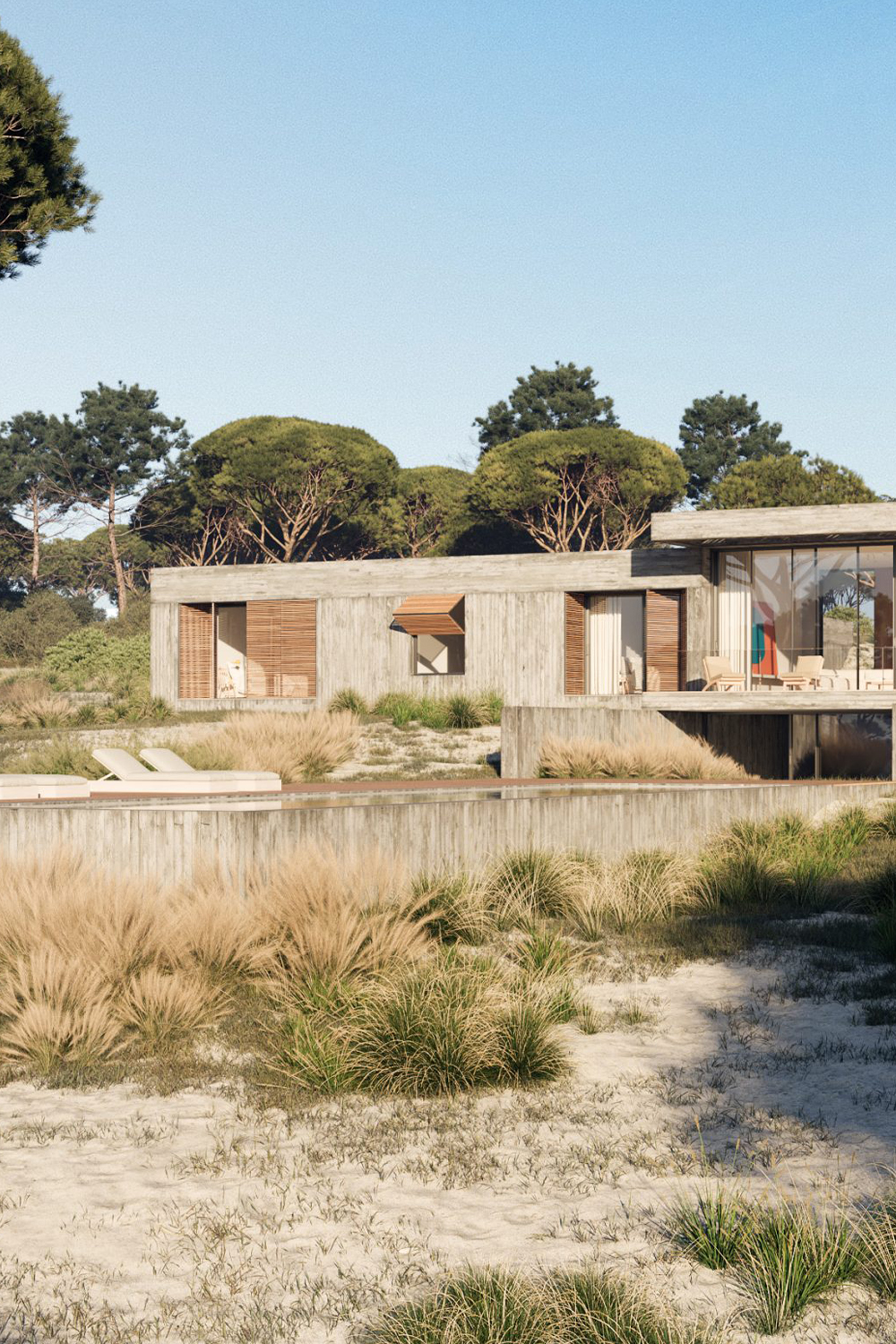 The pristine white beach and the raw, pure natural landscape surround the JNcQUOI Beach Club. The project is located on the Praia do Pego coast in Comporta, Portugal, and was designed by Vincent Van Duysen Architects. It responds to the site with an architectural language that is in harmony with nature. This is not only a place for living, dining, gathering, and relaxation, but also a coastal oasis that integrates architectural expression with the raw magnificence of Alentejo. It conveys the unique and extraordinary spirit of Comporta in a concise manner.